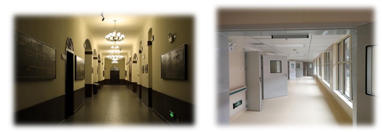 重修后的“紅樓”,尊重歷史、還原歷史,也兼具現(xiàn)代化醫(yī)院的功能。步入“紅樓”內(nèi)部,仿佛乘坐時光機,由百年前跨越到現(xiàn)代。由老式的木扶手到現(xiàn)代的中央空調、網(wǎng)絡控制系統(tǒng)、門禁系統(tǒng)、護理呼叫系統(tǒng)……一切都是那么的自然、和諧。