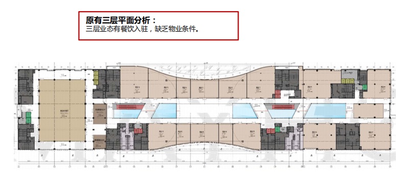 ③一~二層局部中庭封補(bǔ)樓板,增加商業(yè)人流的停駐面積(1796.47㎡)