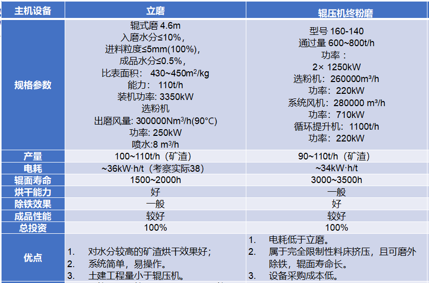 該系統(tǒng)具有電耗低、原料適應(yīng)性強(qiáng)、維護(hù)工作量小的特點(diǎn),與傳統(tǒng)立磨技術(shù)相比,在實(shí)際運(yùn)用中,大幅降低了企業(yè)的生產(chǎn)成本和維護(hù)成本,對比詳情如下表: