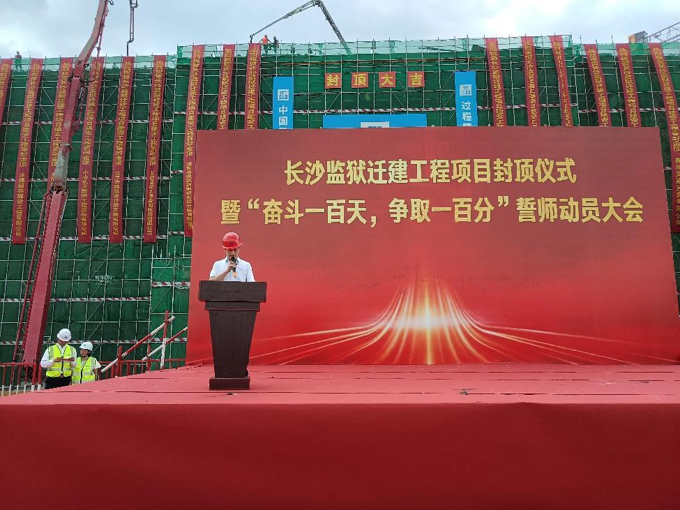 7月8日,長沙監(jiān)獄遷建工程項目舉行項目封頂儀式暨“奮斗一百天,爭取一百分”誓師動員大會,掀起工程建設(shè)全面沖刺新熱潮,確保按期按質(zhì)完成目標(biāo)任務(wù)。